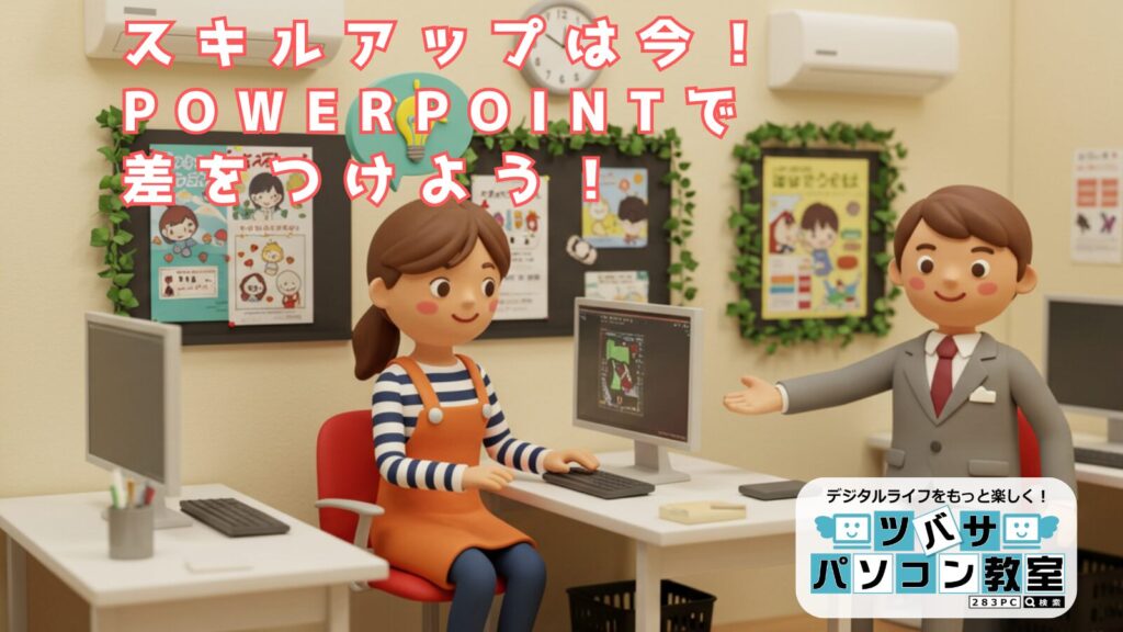 プレゼンテーションソフト「PowerPoint」を使って、動きのある魅力的なプレゼンテーション資料や動画作成をするスキルが身につきます。