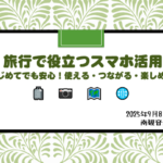 2025/09/16 / 最終更新日時 : 2025/09/16 tsubasa_pc 南観音公民館で、スマホ活用セミナーの講師を務めました 広島市西区の南観音公民館にて開催された 「スマホ学び塾 旅行で役立つスマホ活用術」の講師を務めました。 今回は、スマートフォンを旅行に役立てる方法を学んでいただきました。 スマホを使って、観光名所やお天気を調べることはも […]